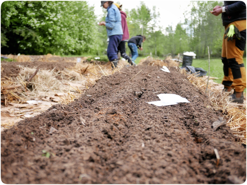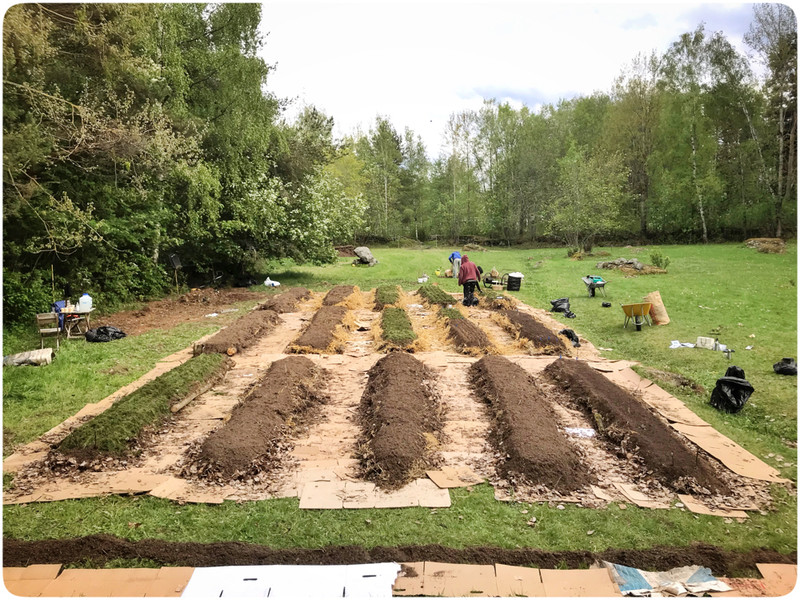 Odlingslimpans recept är enkelt. Bottna formen med paff och tillsätt grovt material som grenar och kvistar, sedan finare material innan du toppar med stallgödsel och slutligen matjord. Som grädde på moset används gräsklipp för att förhindra att ogräset får fäste samtidigt som det håller jorden fuktig och ger näring åt grödorna. Allt det här organiska materialet kommer brytas ner likt en kompost och bli superfin, maskrik jord att fortsätta odla i år efter år.