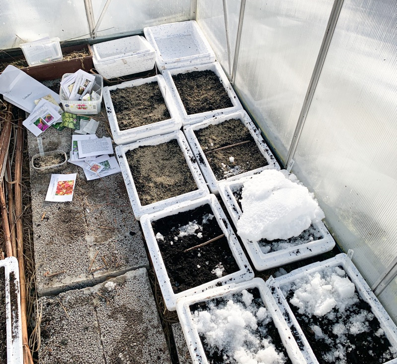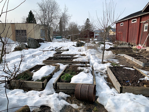 Ah! Det är skönt att vara igång med trädgårdsarbetet så här på sidan om den hektiska påskveckan på intågande. De senaste dagarna har en otrolig mängd snö smält undan bakom Floristgaraget och låtit odlingslådor och bäddar komma fram.